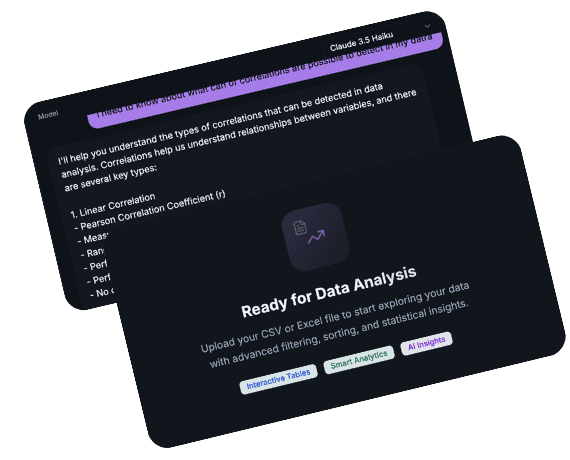 Converse directly with your datasets—upload, ask, and uncover insights using natural language, all within the same dynamic interface.